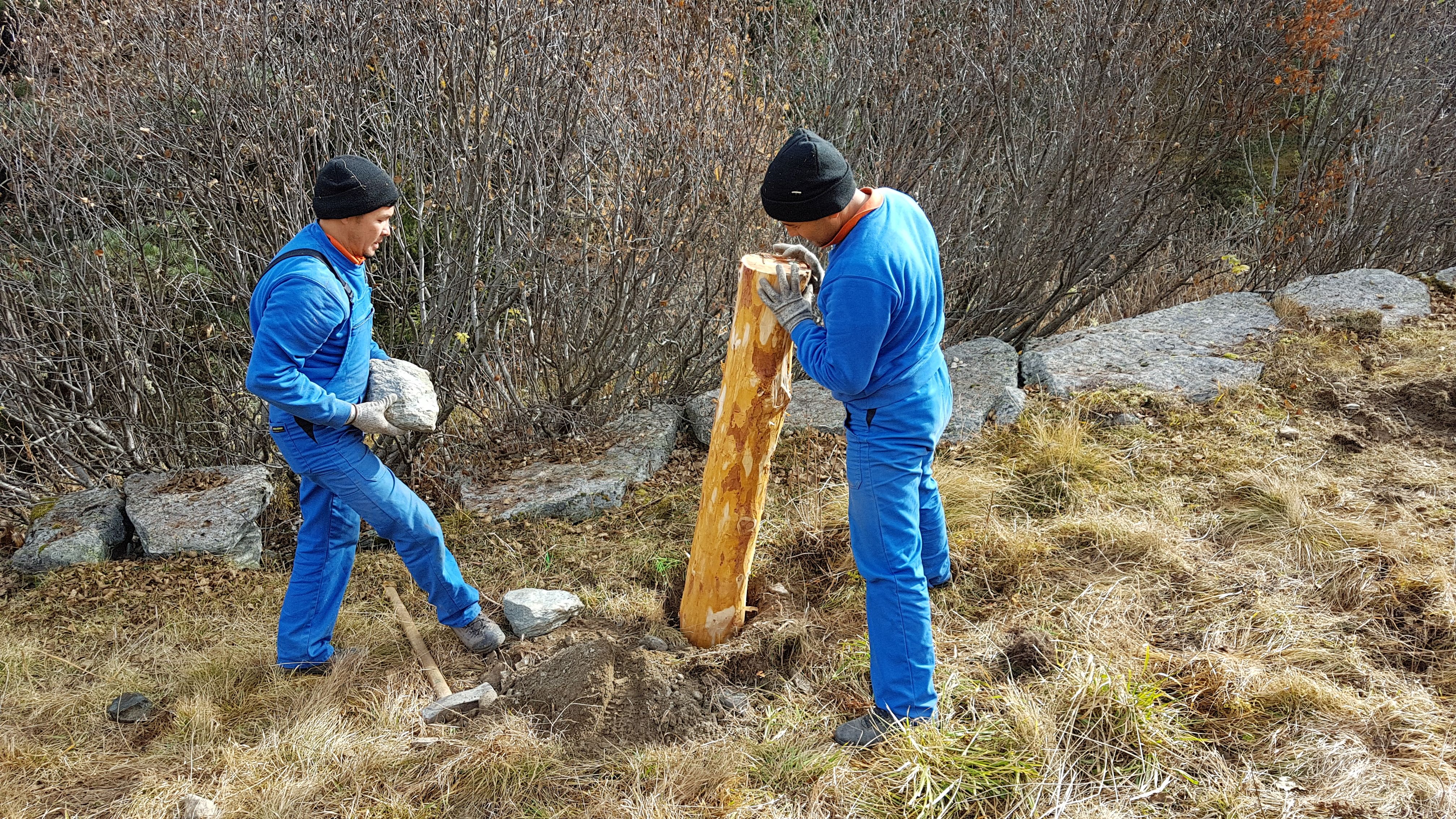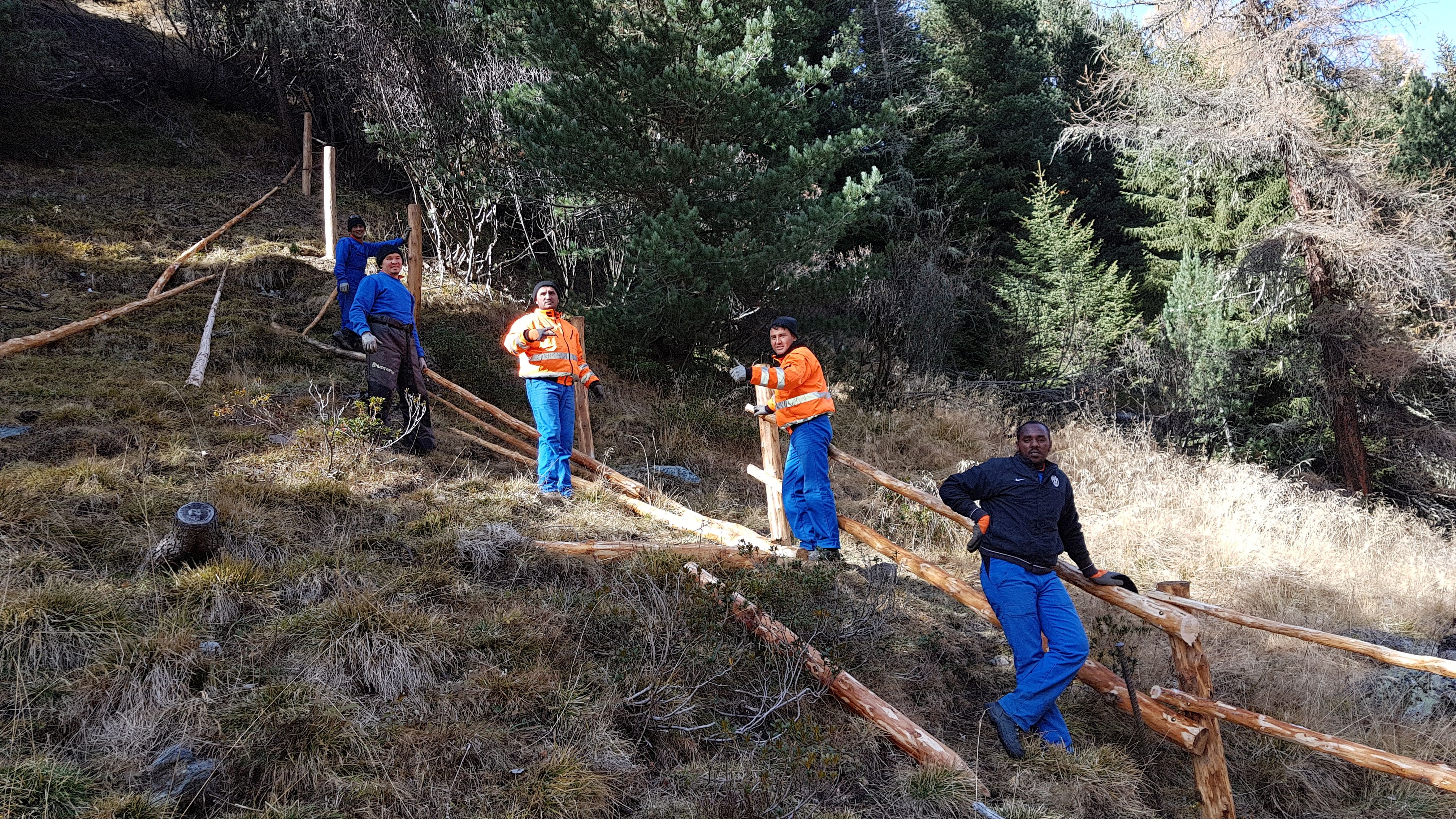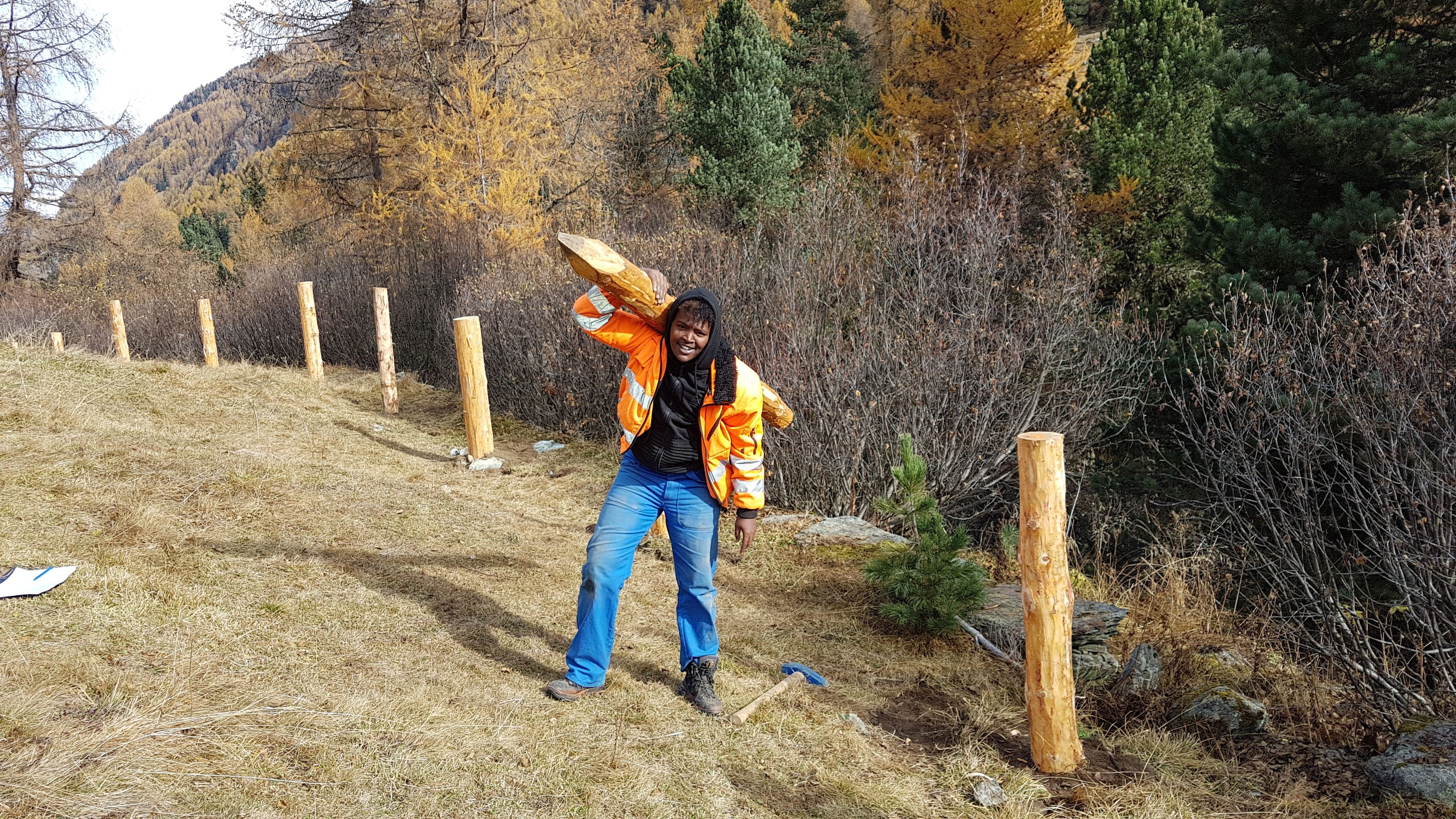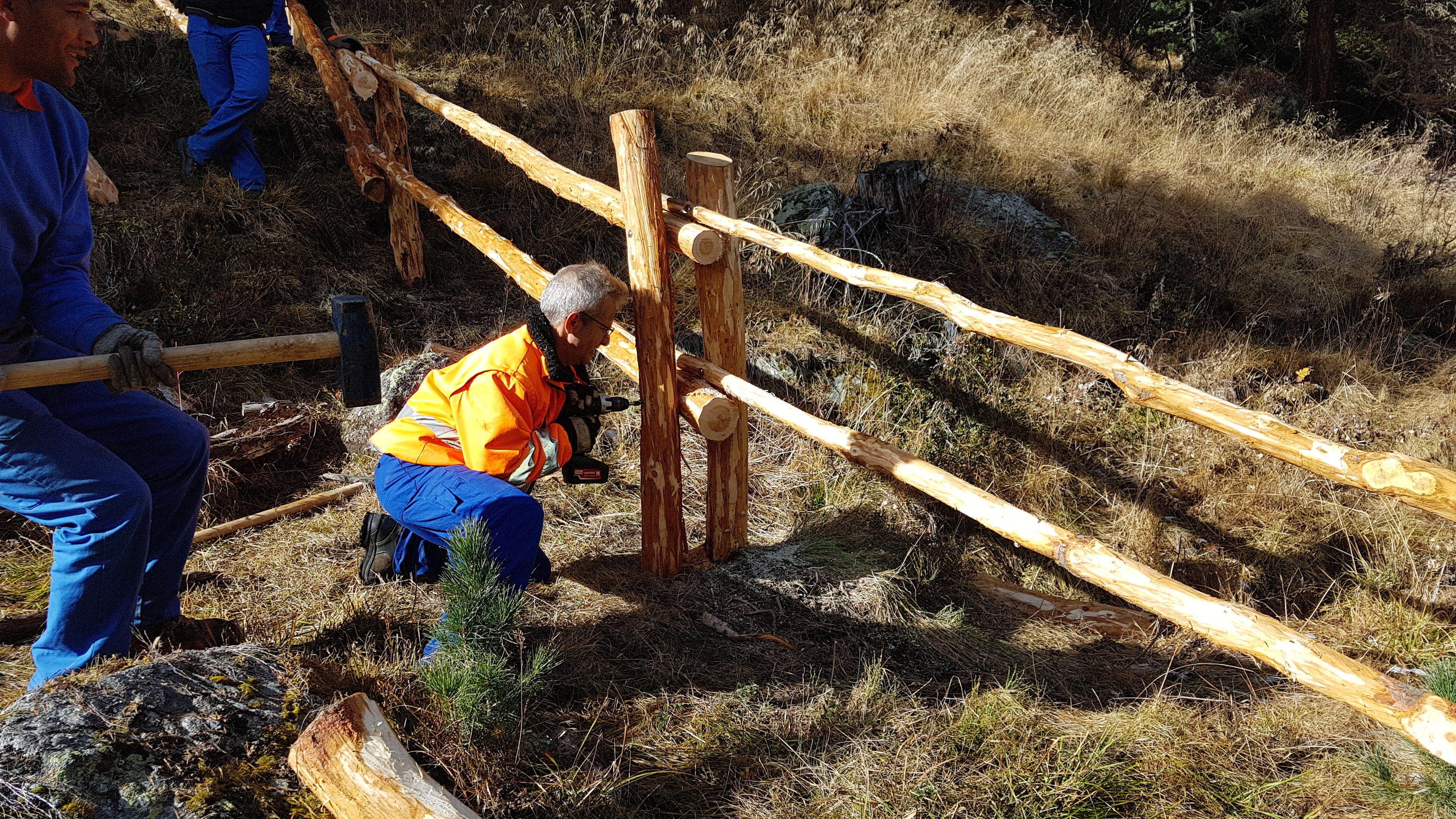 Im Auftrag des Naturpark Pfyn-Finges und mit Unterstützung des Fond Landschaft Schweiz wurden mit einer Asylantengruppe auch im Turtmanntal verschiedene Holzzäune aufgestellt.